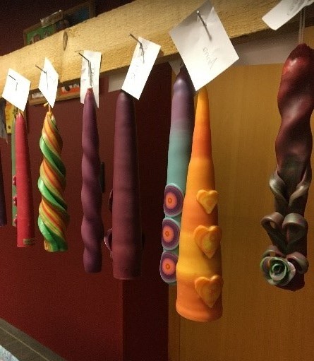 selbst eine Kerze ziehen und verzieren. Diese werden